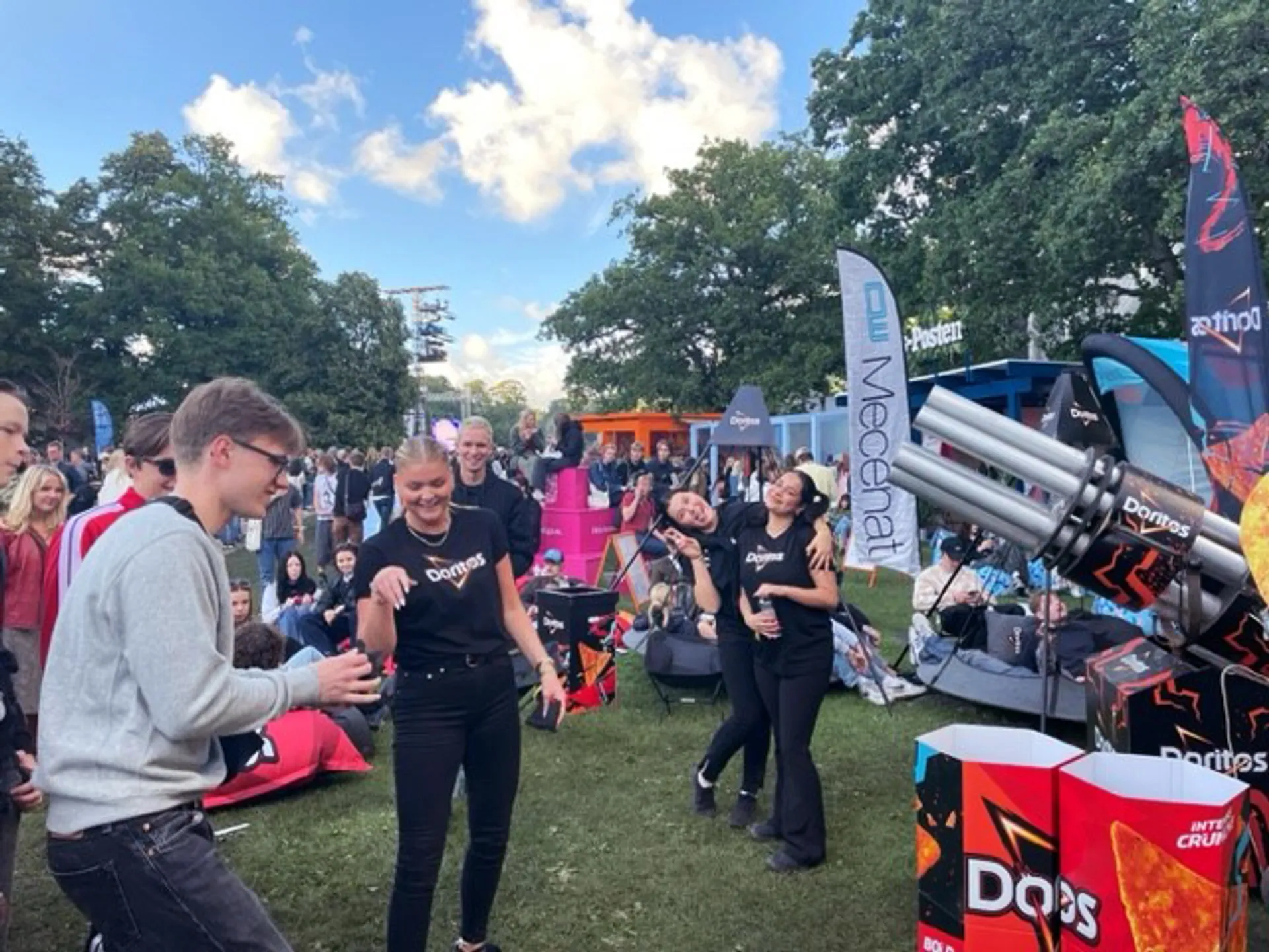 PepsiCo sought to give an impulse to one of the brands in their large portfolio of renowned names. The focus of this summer festival activation was Doritos, globally known for their triangle-shaped tortilla chips. Brand Impact, SSI Network’s Swedish member was responsible for planning, synchronizing and conducting all these activations. The main objective? To enhance brand awareness of new Doritos flavours in Sweden.